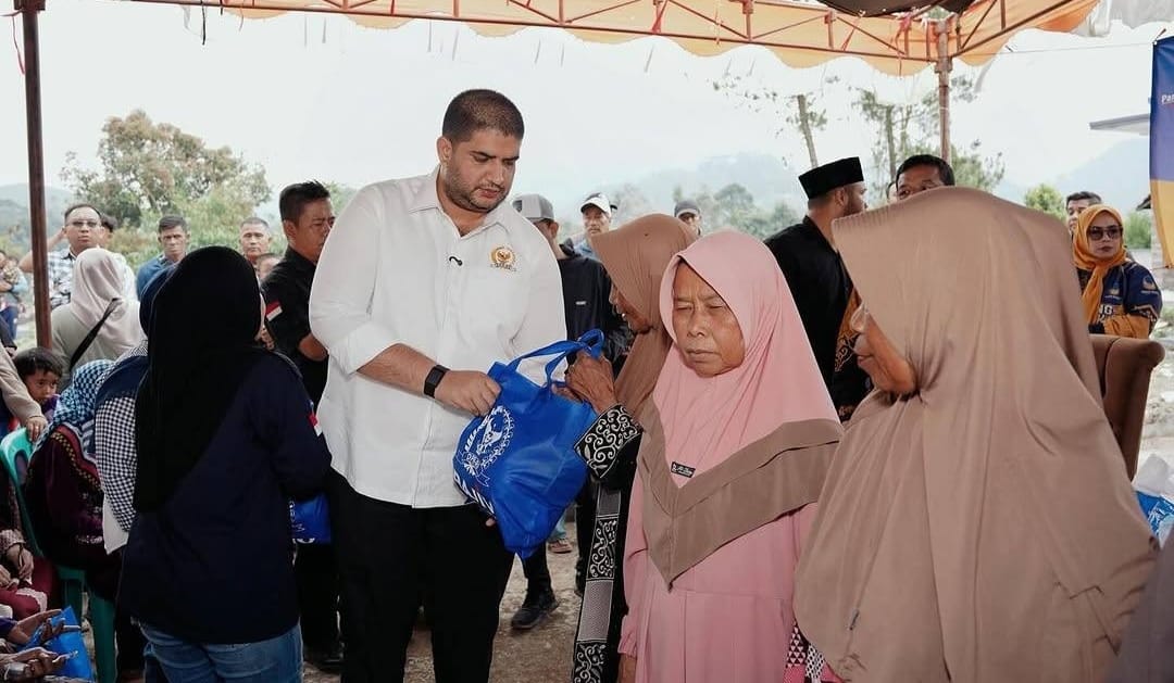 BANDUNG BARAT (10 Oktober): Di tengah kondisi ekonomi yang dihinggapi ketidakpastian, anggota Komisi IV DPR RI, Rajiv, menggelar bakti sosial dengan membagikan paket sembako kepada masyarakat Desa Cikidang, Lembang, Bandung Barat, Jawa Barat pada Kamis (9/10/2025).
