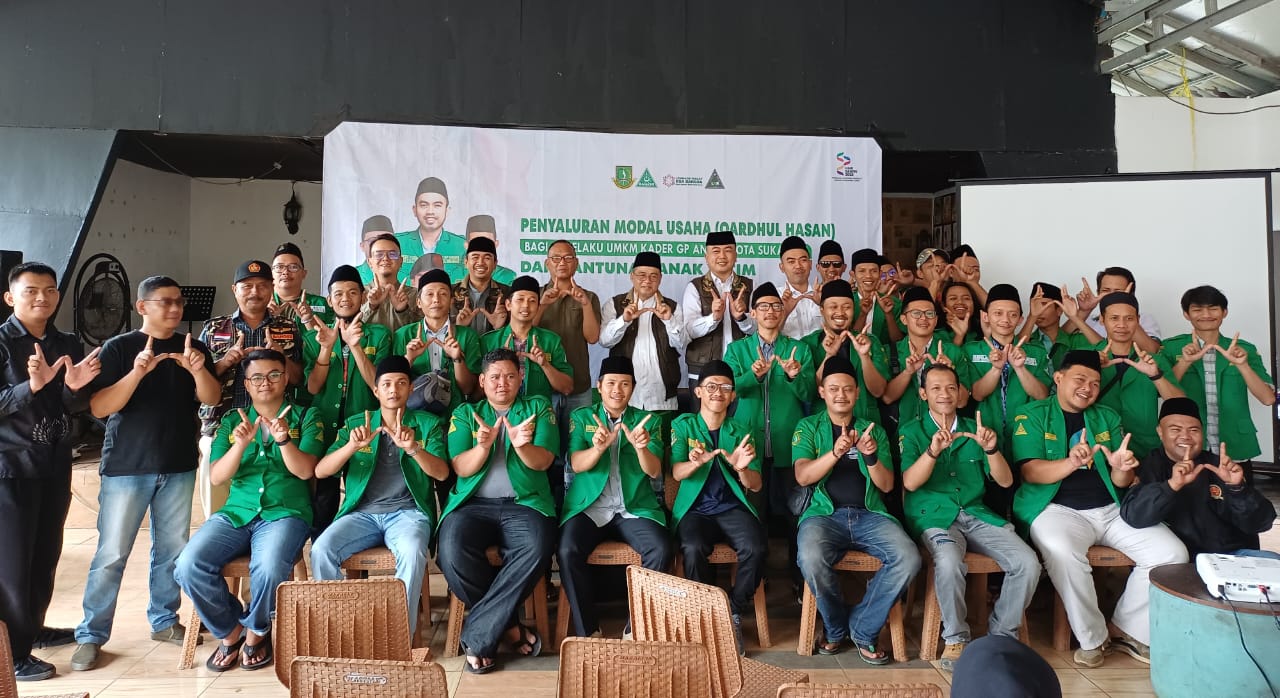 SUKABUMI (25 Oktober): Gerakan Pemuda (GP) Ansor Kota Sukabumi bersama Lembaga Wakaf Doa Bangsa (LWDB) kembali menunjukkan kepedulian sosial kepada masyarakat melalui penyaluran Qardhul Hasan untuk 84 pelaku UMK dan santunan bagi 30 anak yatim. Kegiatan berlangsung di Villa Cantik, Dayeuhluhur, Kecamatan Warudoyong, pada Sabtu (25/10/2025).