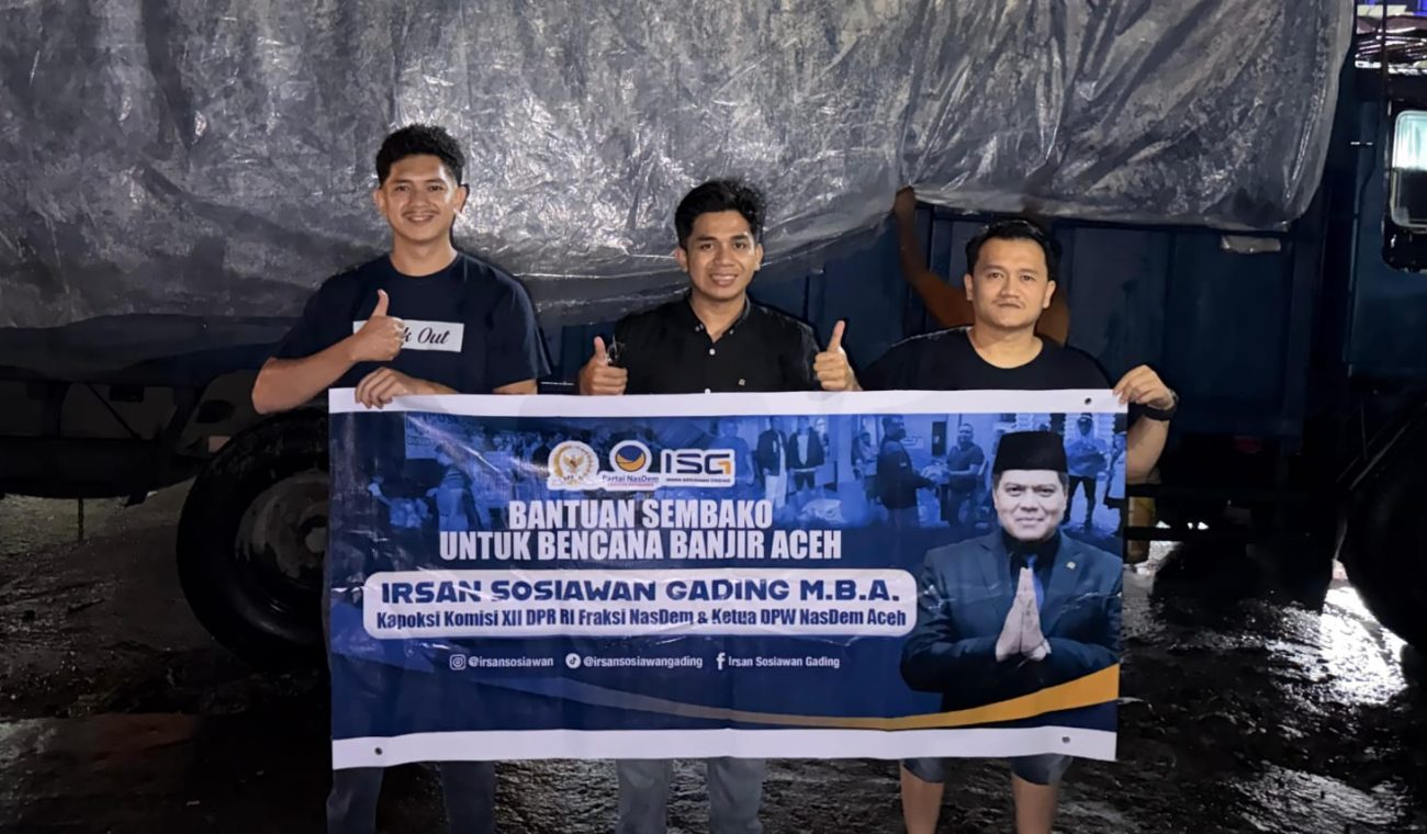 BANDA ACEH (3 Desember): Anggota DPR RI asal Aceh, Irsan Sosiawan Gading, mengirimkan 10 ton bantuan sembako ke Aceh Tamiang dan Langsa di tengah kerusakan infrastruktur parah yang membuat kedua wilayah itu minim tersentuh bantuan sejak banjir besar melanda.