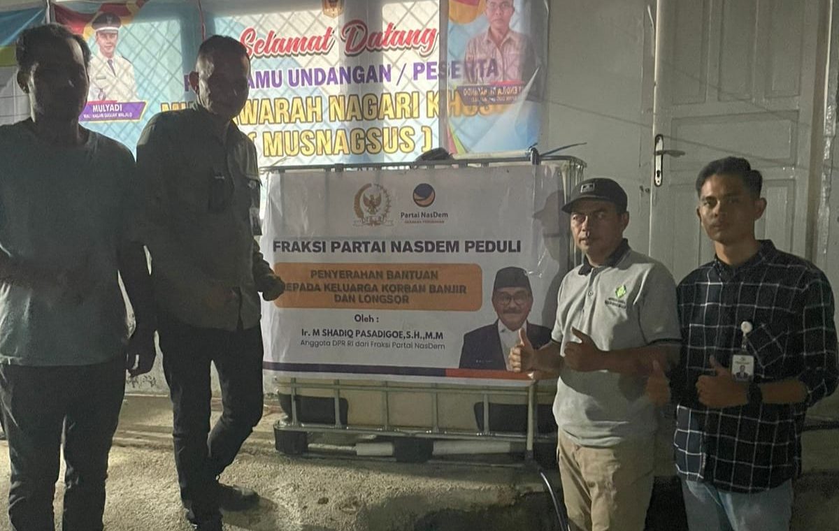BATUSANGKAT (8 Desember): Bantuan Fraksi Partai NasDem DPR RI untuk bencana Sumatra terus digulirkan melalui anggota DPR RI di daerah pemilihannya. M Shadiq Pasadigoe, anggota DPR dari Dapil Sumatra Barat I melalui relawannya terus aktif menyalurkan bantuan kemanusiaan ke masyarakat terdampak banjir dan galodo di beberapa wilayah Kabupaten Tanah Datar.