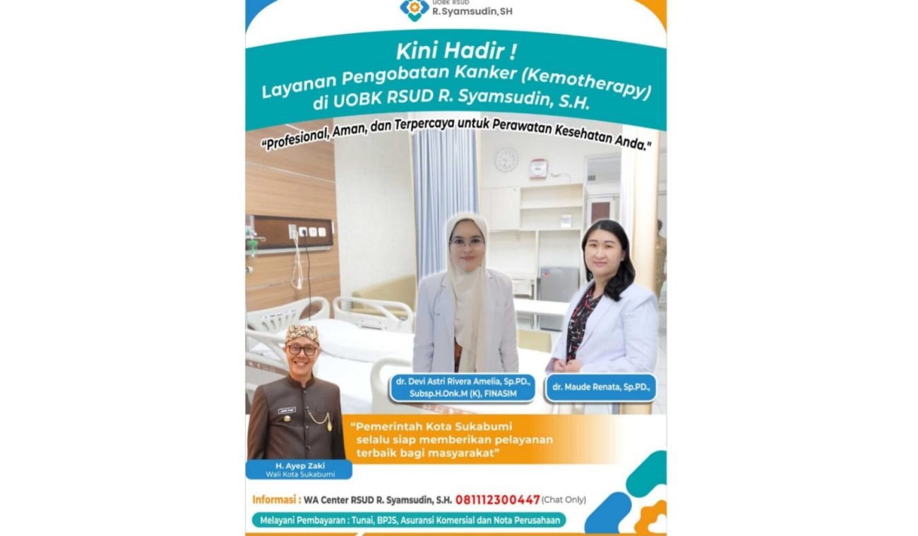 “Semoga ikhtiar penambahan layanan kemoterapi semakin memberikan manfaat kepada masyarakat pengguna jasa layanan kesehatan RSUD R. Syamsudin, S.H. Kota Sukabumi,” pungkas Yanyan.