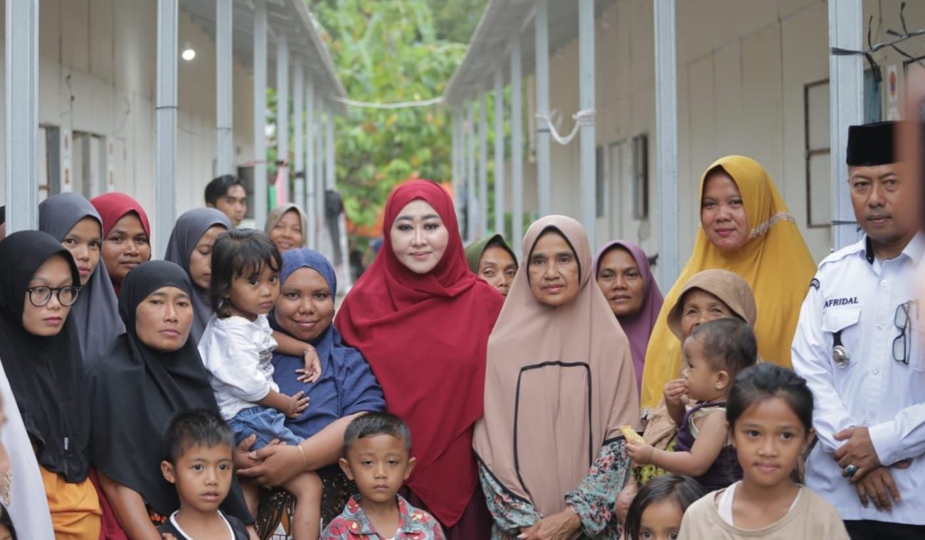 Selain menyerahkan bantuan, Lisda juga berdialog langsung dengan warga untuk mendengarkan kondisi dan kebutuhan mereka selama tinggal di huntara.