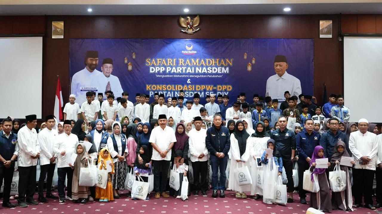 YOGYAKARTA (6 Maret 2026): Rangkaian Safari Ramadan DPP Partai NasDem hari ke-12 diisi dengan agenda konsolidasi DPW dan DPD Partai NasDem se-Daerah Istimewa Yogyakarta (DIY) di Merapi Merbabu Hotel Yogyakarta, Rabu (4/5). Kegiatan dilanjutkan dengan penyerahan santunan kepada anak-anak yatim sebagai bentuk kepedulian sosial di bulan Ramadan.