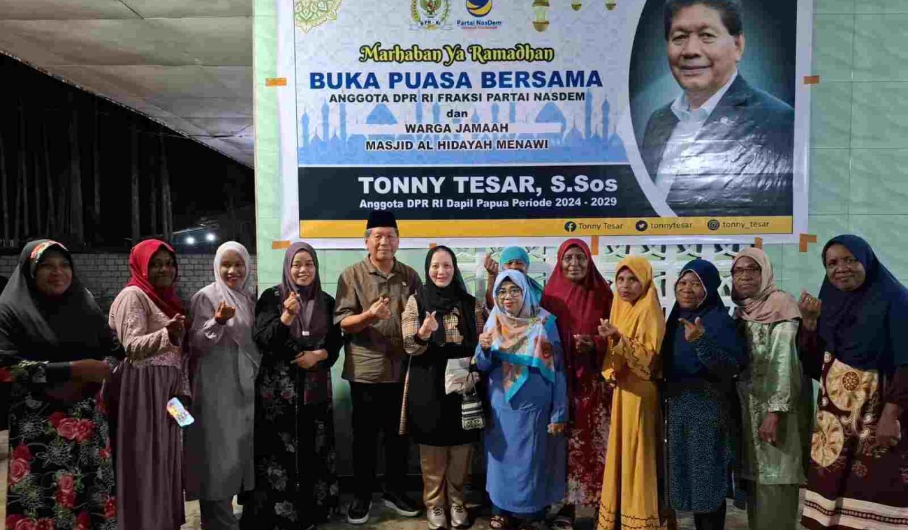 Tonny menggelar buka puasa bersama jamaah Masjid Al Hidayah Serui pada Sabtu (7/3/2026). Dalam kesempatan tersebut, ia tidak hanya menghadiri kegiatan, tetapi juga menyerahkan bantuan untuk pembangunan masjid serta santunan khusus bagi ibu-ibu mualaf.