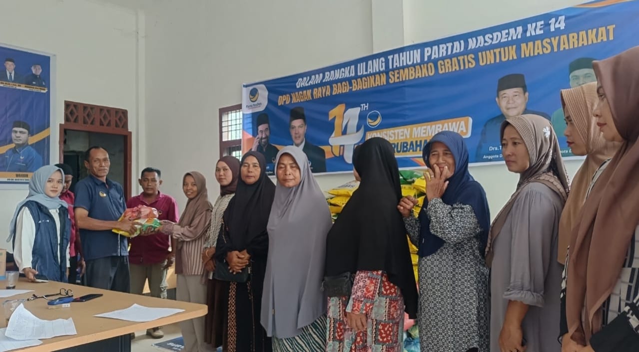 Bagi-bagi Sembako Gratis, Kantor DPD NasDem Nagan Raya Dipadati Warga